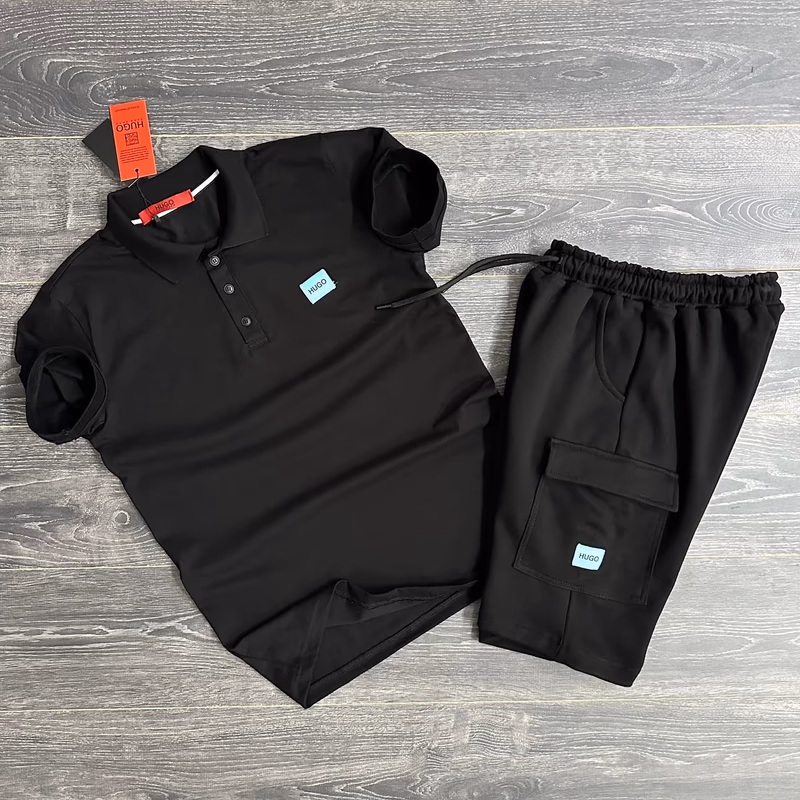Hugo Boss Crna Majica Crni Šorc (Plavi Znak)