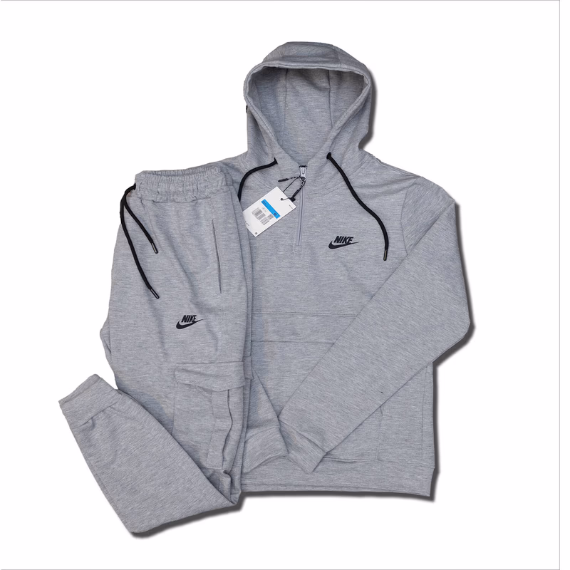 Siva Nike džeparka sa crnom gumom na prsima koja dodaje kontrast i sportski karakter. Neutralna siva boja omogućava lako uklapanje u svaki outfit, dok funkcionalni džepovi pružaju praktičnost. Udobna i stilska za svaki dan.